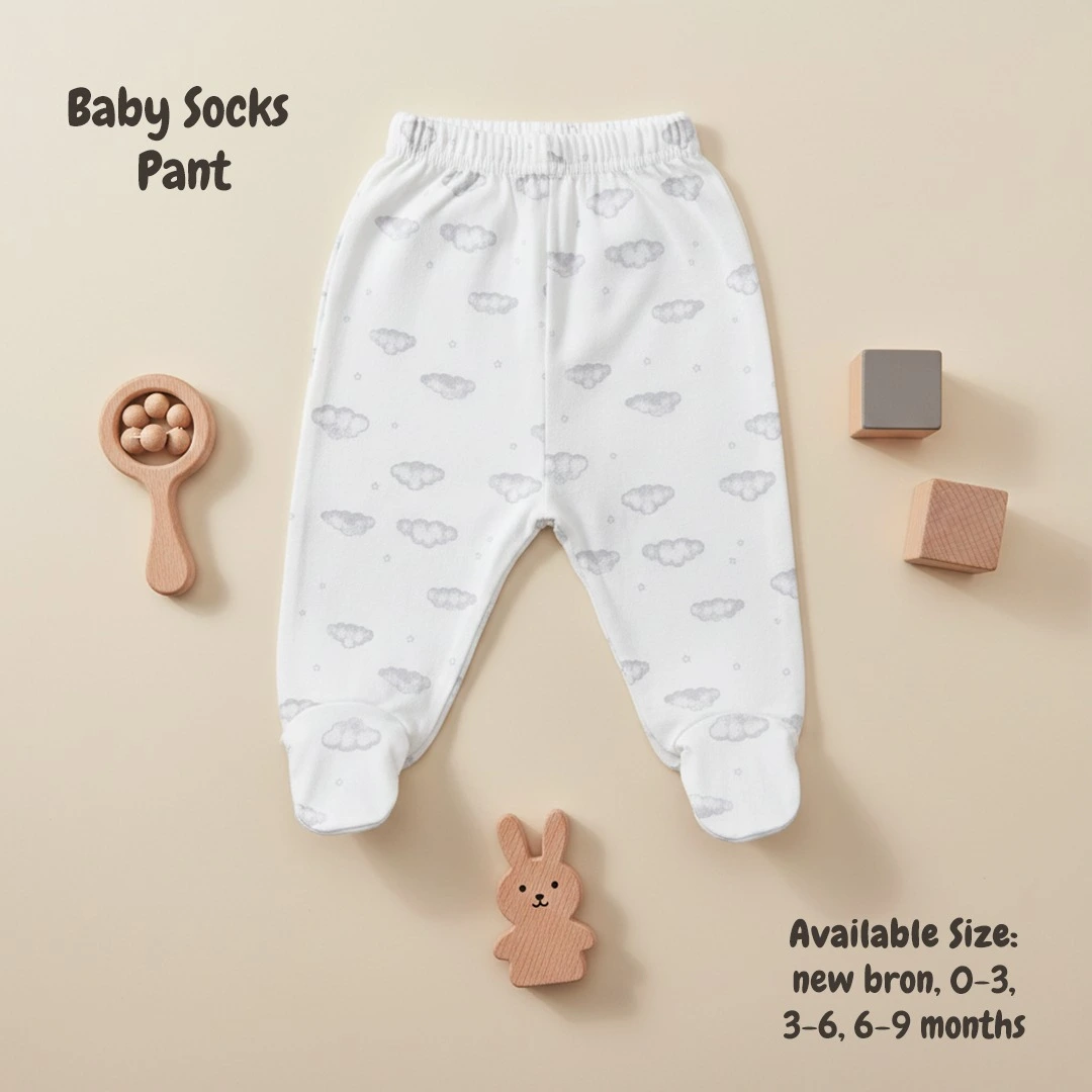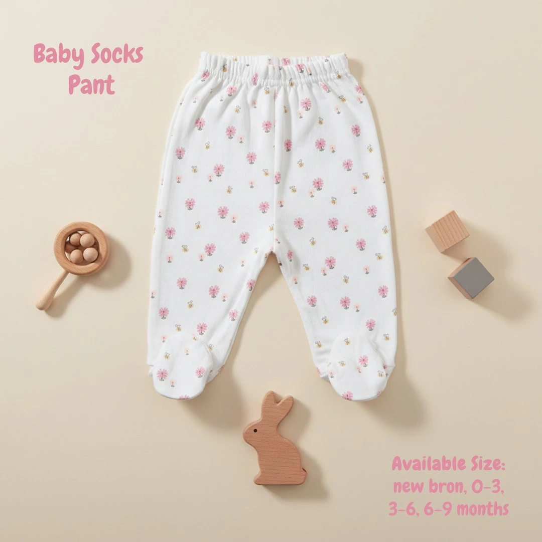 All-in-One Comfort for Your Little One Our 6-Piece Baby Socks Pant Set is the ultimate solution for keeping infants warm and stylish. By combining soft leggings with built-in socks, these “socks pants” provide a seamless fit that stays in place no matter how much your baby kicks or crawls.