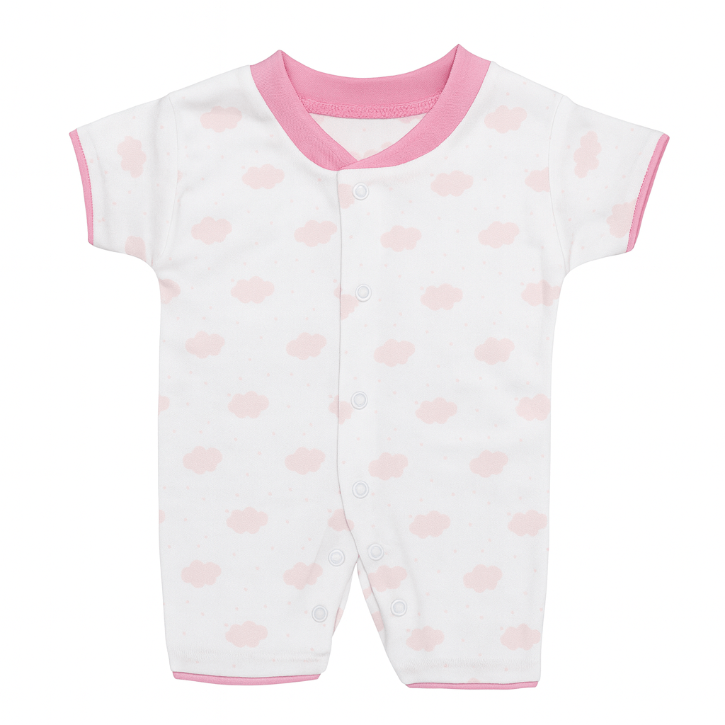 The delicate pink print adds a sweet, playful touch, making it perfect for baby girls. Convenient snap buttons at the bottom allow for quick and fuss-free diaper changes. Lightweight, soft, and durable, this romper is ideal for everyday use – whether at home, during outings, or at nap time.