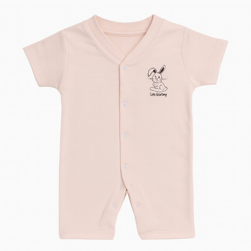 Baby Romper Peach Pink Bunny Print | Short Sleeve Cotton Onesie (3–6 Months)