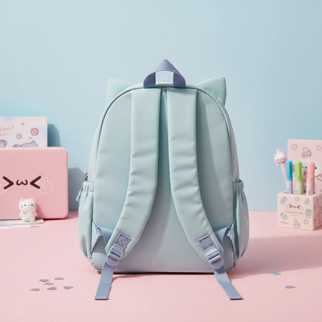 Kawaii Cat-Ears Backpack | Pastel Blue School Daypack for Girls