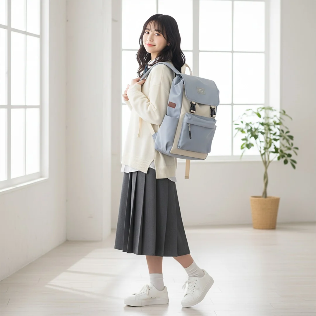 Embrace the adorable and functional style of this ZSTLZ two-tone daypack. Blending soft pastel blue/grey with warm cream/beige accents, this backpack is a trending favorite for high school and university students seeking that popular Aesthetic or Vintage Rucksack look. It’s perfect for carrying everything from textbooks and a laptop to your daily essentials.